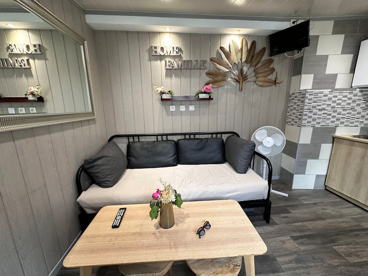 Relax in our comfortable and practical studios (23sqm), equipped with a double bed or pull-out bed depending on at conguration, airconditioning, soundproof windows, blackout curtains and a at screen TV. You will also enjoy the work area with a phone, wireless internet and a safe. For your comfort, the bathroom is equipped with a towel dryer. The kitchen corner will make your stay easier.