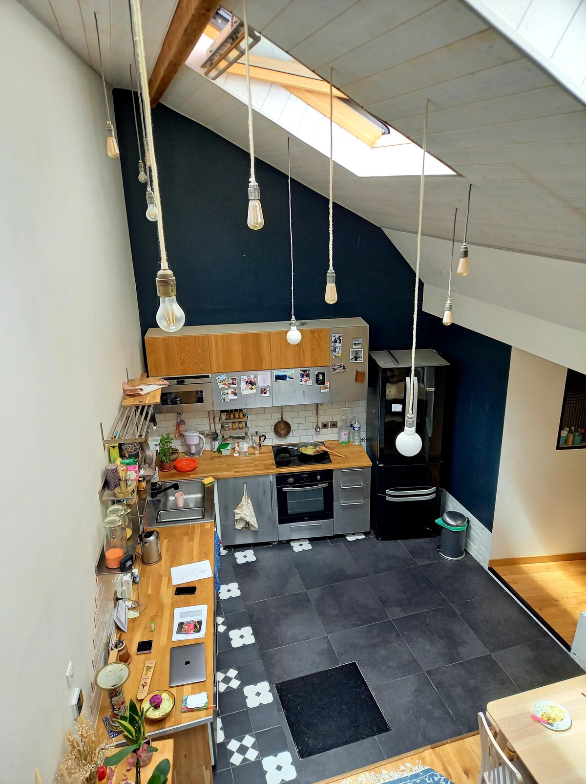 L’idée pour la construction de cet appartement est basé sur le principe écologique et la meilleure qualité possible. Pour la santé et au bien-être de ses occupants. Les matériaux utilisés sont naturels, bois, métal, laine de bois pour l’isolation et peintures biologiques. Une partie des matériaux ont été récupèré et restauré, les poutres en chêne, les portes et les radiateurs entre autres.