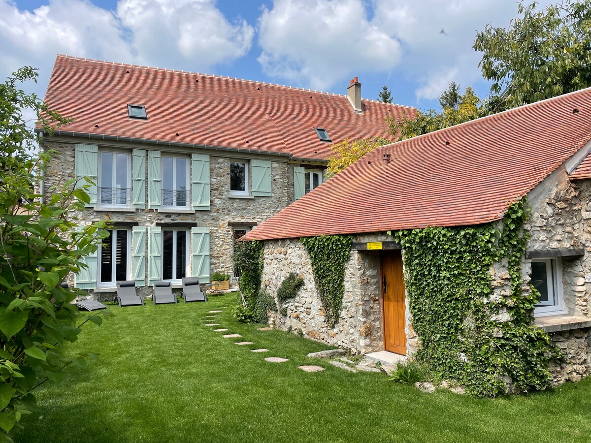 Located in the heart of the Vallée de la Marne, 90km away from Paris and 55km from Reims and Epernay, discover our beautiful and independent house. A mix of the old charm and the calm of the countryside. It benefits from modern comfort and optical fiber. In its garden you will enjoy the peaceful and quiet nature. Ideal for 2 or 3 families or a group of travelers, our charming wine-growing village of Chézy-sur-Marne offers you all the necessary shops and the SNCF train station (Paris East line).