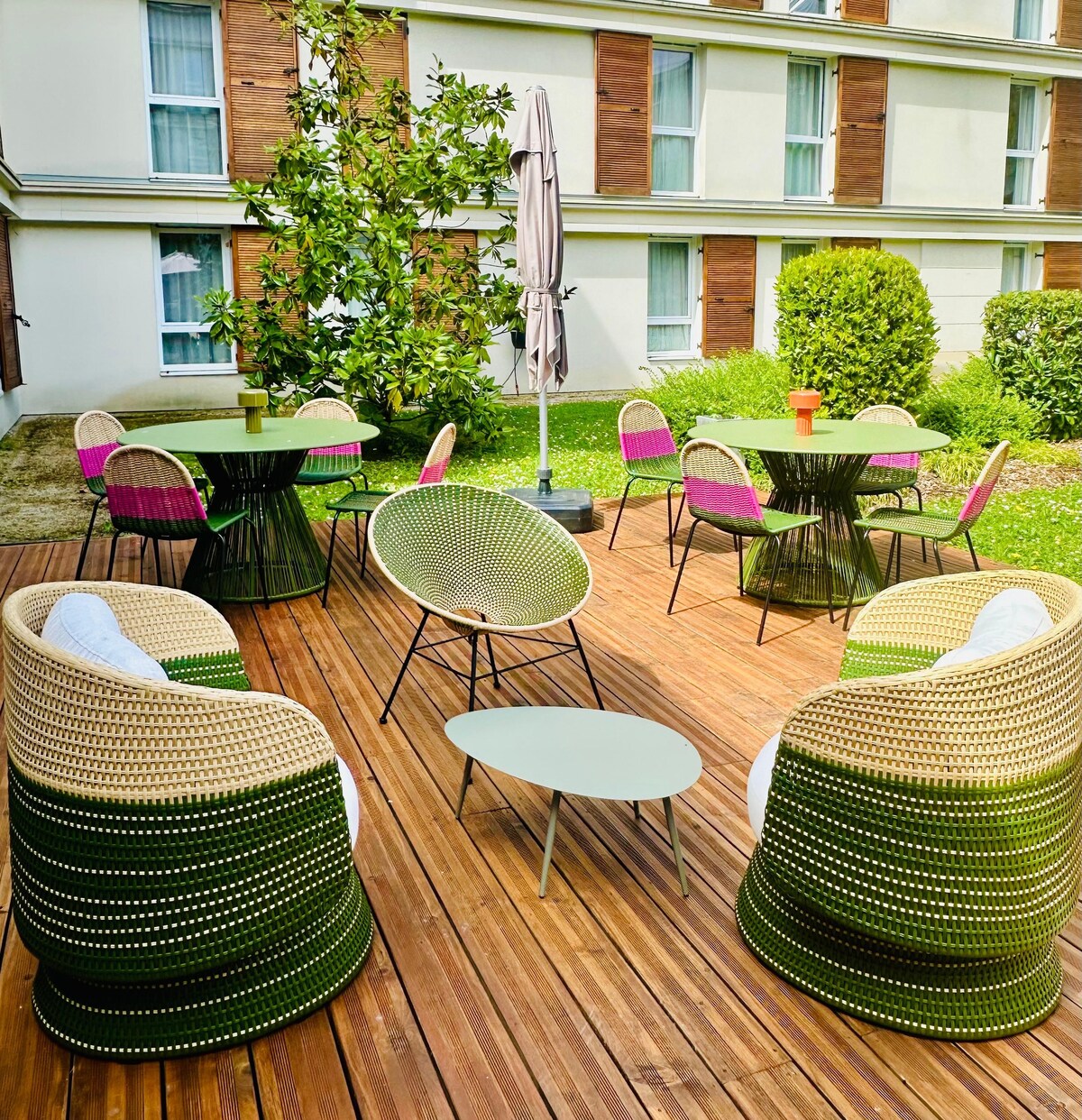 The Apparthotel Residhome Puteaux La Défense in the heart of the new Bergères eco-neighborhood, welcomes you in a modern and dynamic environment. Located 2.3km from the CNIT La Défense convention center and 2km from the Grande Arche. Accommodation particularly appreciated by couples (average score of 9.6/10). Please note that a credit card deposit is required on the day of arrival. €150 for Classic Studios and €250 for Executive rooms. An additional fee of €15 per day applies for pets.