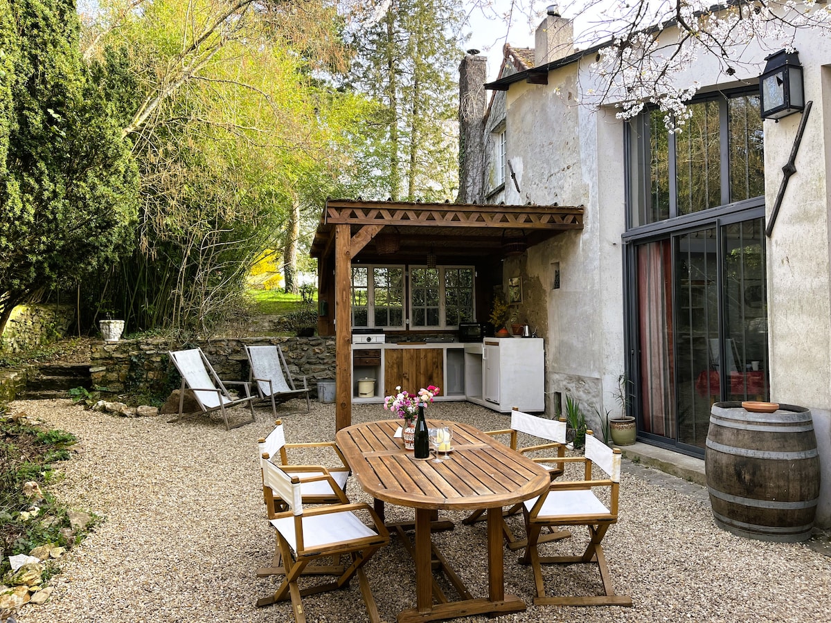 Nestled by the river Seine, in an artist village in the region of Champagne, this former priory is located only 100km from Paris (55mn direct train between the neighboring Nogent s/Sein and Gare de l'Est). This is an authentic and ressourcing place, newly renovated, loaded with 400 years of history. We have decorated the house with love and care, the equipment is very generous. Bikes of diverse sizes (for adults and children), kayaks, SUPs and other inside and outside equipments are available.