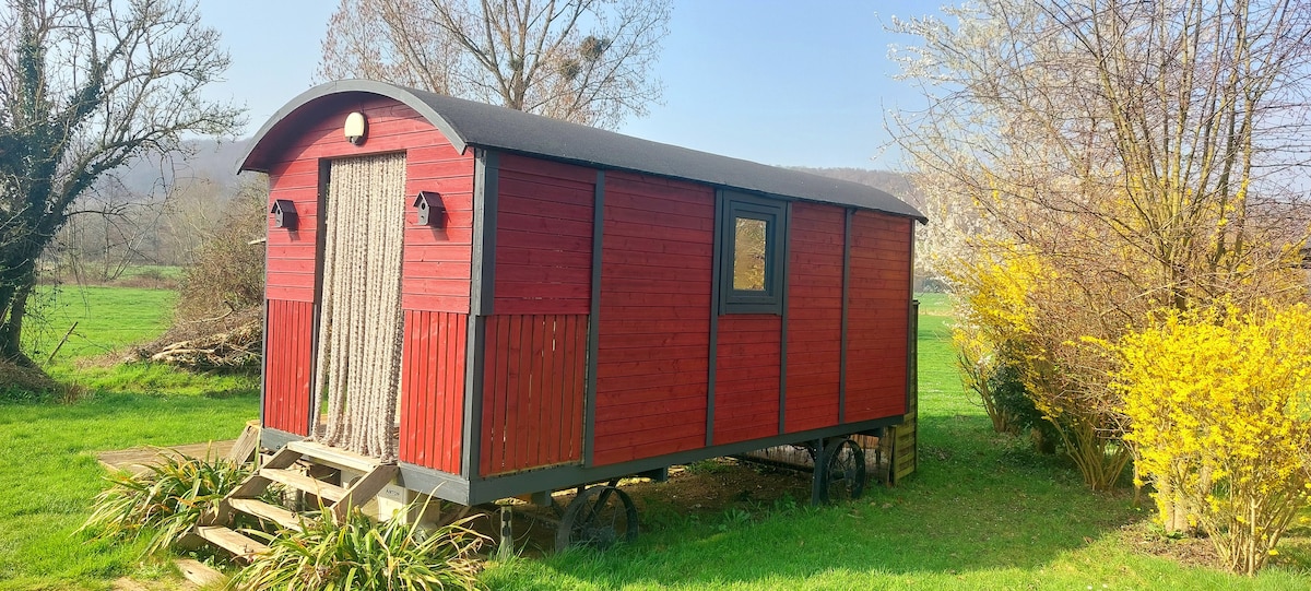 Venez vivre une expérience unique en pleine nature ! Charmante roulotte western, nichée au cœur d'une ferme équestre entourée d'animaux de la ferme. - Confortable et décorée dans un style western authentique - Capacité d'accueil : pour 2 personnes - Équipements : chauffage, frigo (dans l'accueil), micro onde et bouilloire. - Terrasse extérieure avec vue sur la nature - Balades à cheval (en supplément) et découverte des animaux de la ferme. - Calme et tranquillité garantie.