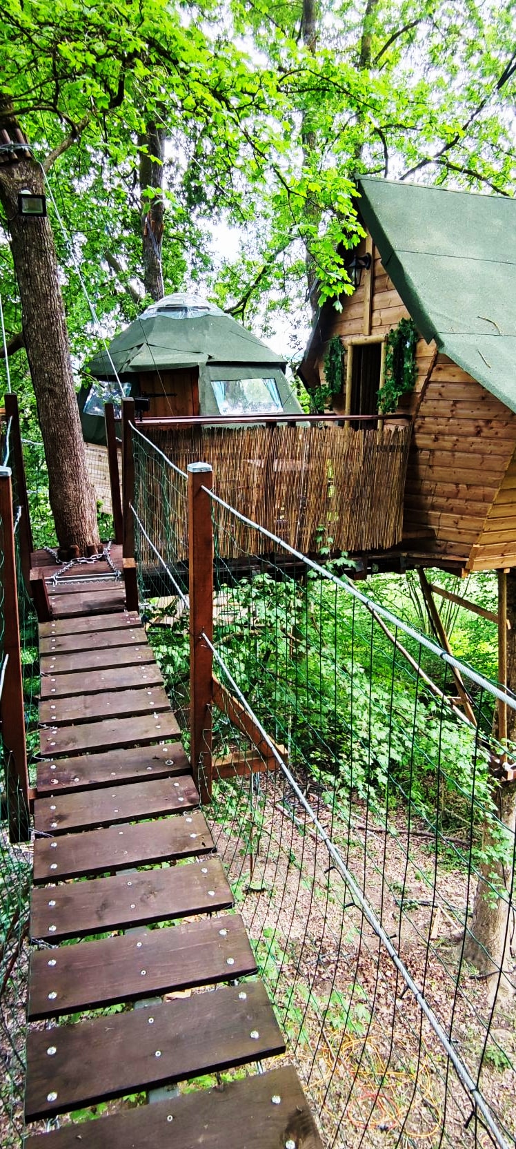 Pour un moment unique perché à 6 m dans les arbres, accessible par un escalier de meunier. Un nid douillet et cosy vous attend au bout d'un pont suspendu, pour une immersion totale dans les arbres. Une parenthèse féerique dans l'univers des farfadets bercé par le chant des oiseaux. Vous trouverez une dépendance avec un coin cuisine, lavabo et toilettes sèches. Bain nordique en supplément 50€. uniquement sur réservation selon disponibilité.