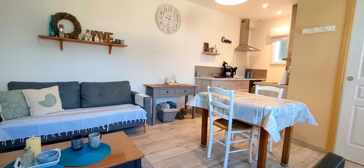 Charming single storey house with wood burning fireplace south facing west private and enclosed garden and terrace. This cute place, nestled in an outbuilding of the owners' house, is located on the edge of a quiet lane with a large park with trees, nature and meadows as neighbours. This place, not far from the Baie de Somme, the sea and the forest, will be ideal for a weekend, a holiday, or a telecommuting break for couples or families.