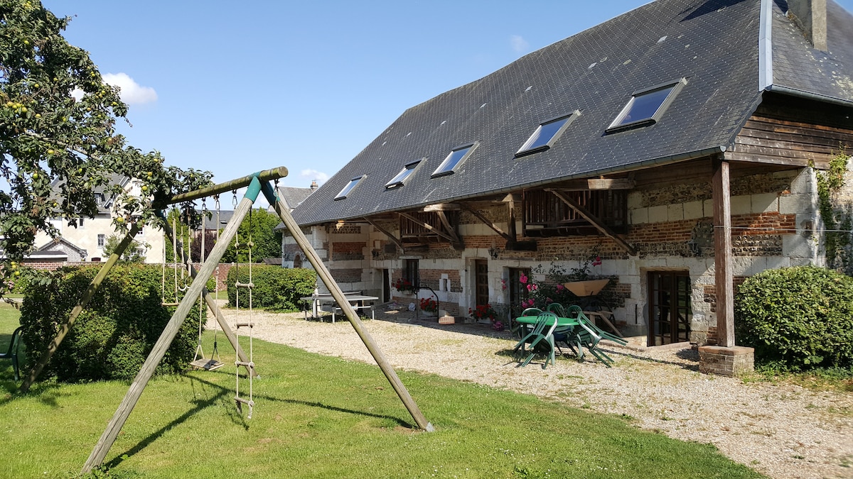 Un lieu où il fait bon vivre et se retrouver en famille ou entre amis dans cette longère typiquement normande construite en 1892, à seulement 120km de Paris, entre Rouen et Lyons-la-Forêt. Cet ancien bâtiment agricole en briques a été converti en un grand gîte spacieux et lumineux, mitoyen à un autre gîte, et ouvert sur un jardin paysager de 6000m2, aménagé pour les enfants.