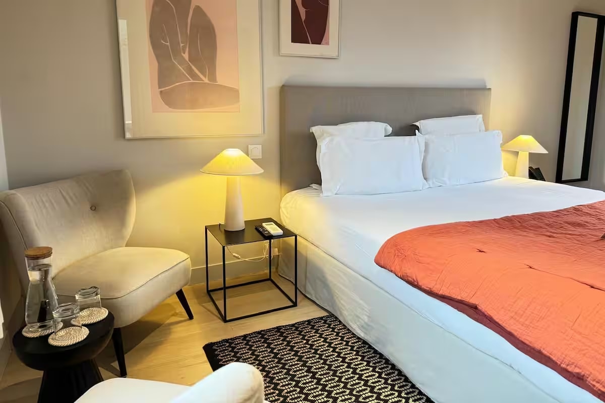 Plus spacieuse, la Chambre Privilège séduit par sa décoration raffinée et son grand confort : lit King Size 180 cm, machine à expresso et, pour certaines, charmants petits balcons. Idéale pour un séjour à deux, elle peut également être aménagée en deux lits simples. D’une superficie de 17 à 20 m², elle s’inscrit dans l’esprit de notre boutique hôtel situé au cœur de Trouville-sur-Mer.