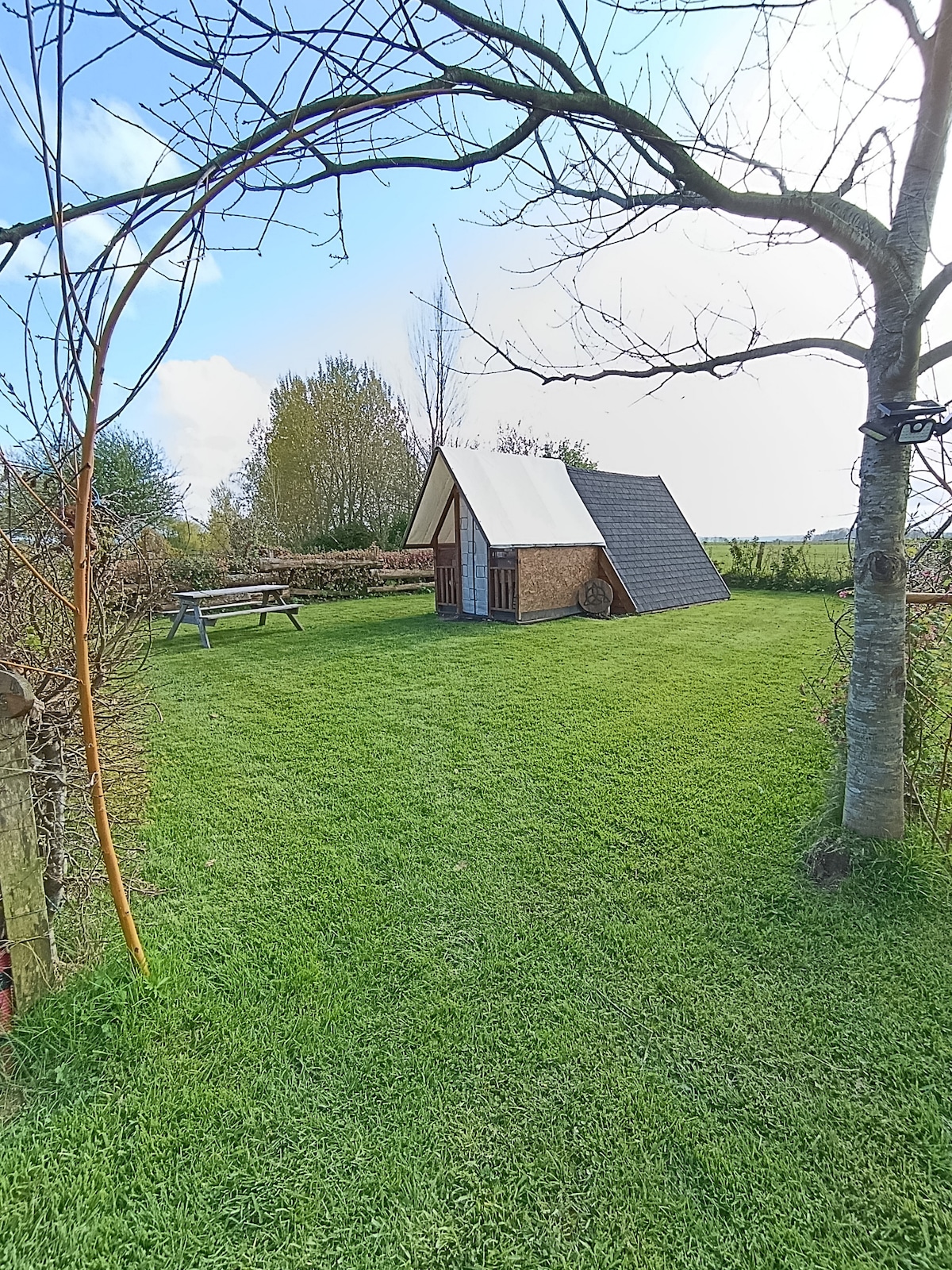 Passez vos vacances dans une cabane en bois prévu pour 2 pers + 1 enfant sur matelas au sol. Les douches, WC, eau et évier sont en commun dans les blocs sanitaires. Il n'y en pas dans la cabane. Pas de chauffage, chauffage d'appoint interdit ! Sur place : mini ferme, aires de jeux, barbecue… Au soleil couchant, vous trouverez la bonne humeur, la convivialité, la simplicité et surtout de l'occupation pour les enfants. Attention !!! Nos amis les chiens ne sont pas acceptés sur juillet / août.