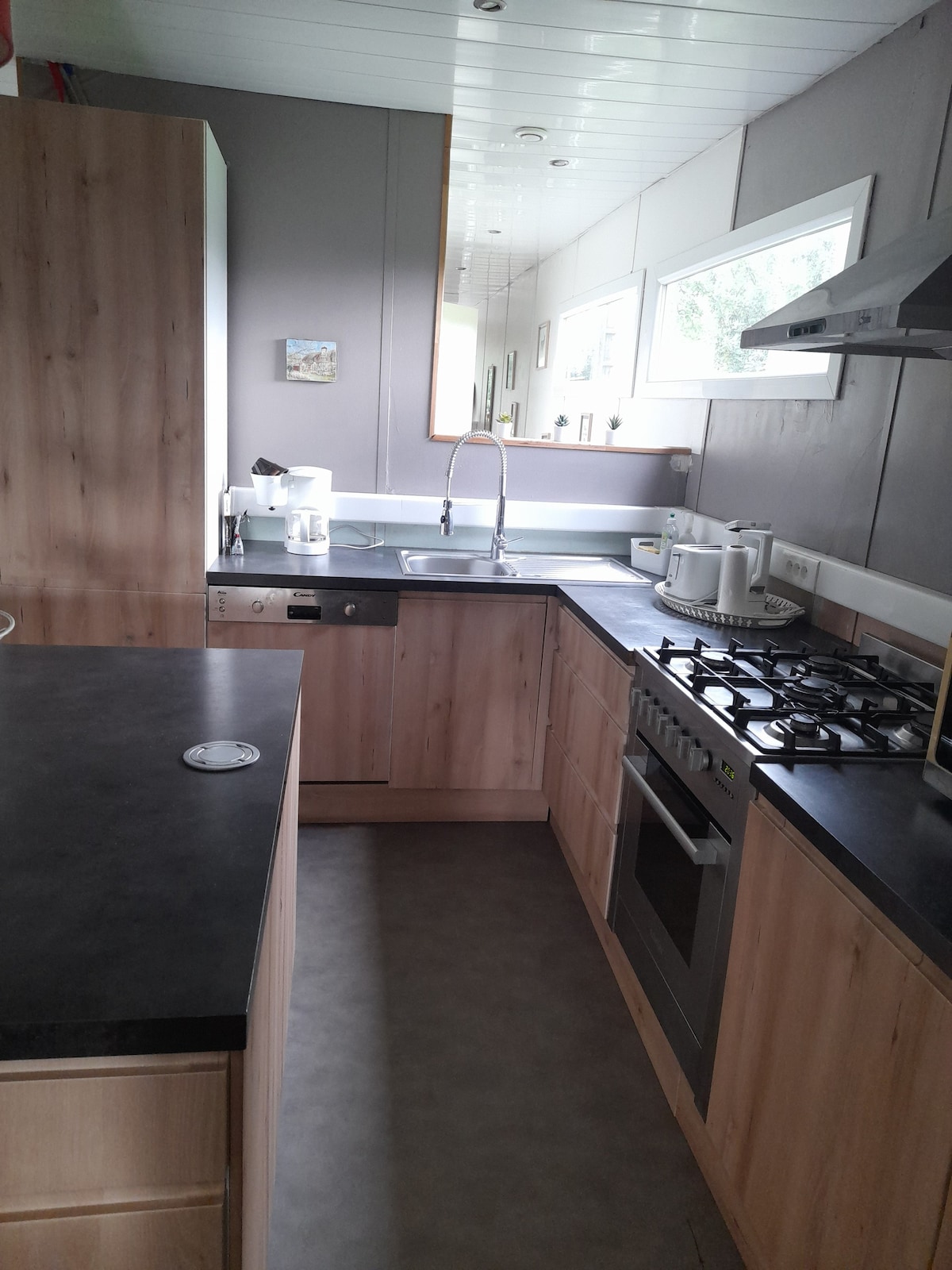 En plein coeur du Pays de Caux. Notre gîte à l'étage avec sa belle terrasse vous permettra de bénéficier de tous les points d'intérêts de la Seine-Maritime et notamment des Boucles de la Seine. Petit + : mon cabinet de massage et shiatsu se trouve au Rdc. Grande cuisine aménagée (four, micro-ondes, réfrigérateur, lave-vaisselle, lave-linge), salon avec canapé convertible, TV - 1 chambre (1 lit 160x200cm), - salle de bains (baignoire, douche à l'italienne, wc). - Jardin clos, terrasse