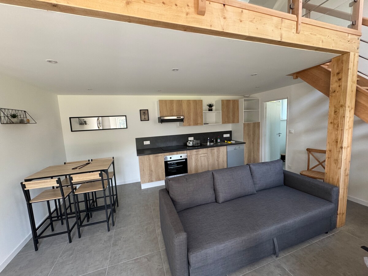 In the heart of the Saint-Leonard district, discover this calm and bright little cocoon (guest accommodation, 20m2) We live on site all year round (house in photo), the accommodation is in our courtyard with independent access Fully equipped: bed and bath linen made in France, coffee and tea, shower gel Equipped with a kitchenette (fridge, microwave, induction hob, oven), shower/WC, queen size bed on the mezzanine (sloping ceiling max 1.5m), 1 p. sofa bed in the living room, table and chairs