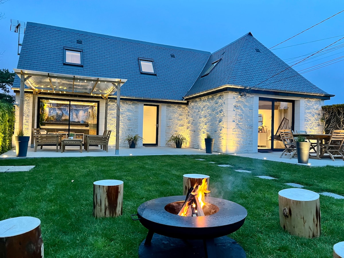 Envie de vivre un Moment Magique ✨en Amoureux ou entre Amis dans un Grand Spa avec une Ambiance Romantique ❤️ Détendez vous dans l'Espace Exceptionnel dédié au Bien-être avec Spa, Sauna & Smart TV dans une Ambiance Dépaysante🌴 grâce au Ciel Étoilé Scintillant qui vous invite au voyage sous les Tropiques Situé à l'intérieur avec Vue sur le jardin, profitez d'un séjour inoubliable en été comme en hiver ! Le Lodge & Sweety❤️Spa est une Magnifique Maison en Pierres nichée au calme dans la campagne