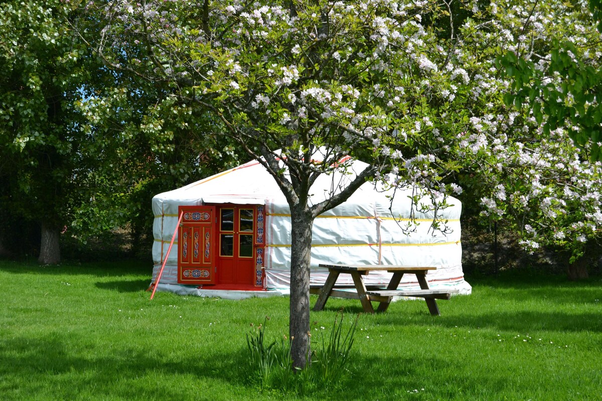 Dans un ancien clos masure, sur un terrain arboré de près d'un hectare, le Courtil vous accueille dans une yourte de style contemporain, entourée de sa terrasse en bois. Isolée de nos logements, vous bénéficiez d'une pièce spacieuse de plus de 60 m2 toute ronde et sans cloison. Elle comprend un lit double, 1 canapé convertible 2 places, un canapé, un coin détente avec son plateau de courtoisie. En hiver, deux radiateurs vous apportent chaleur et confort.