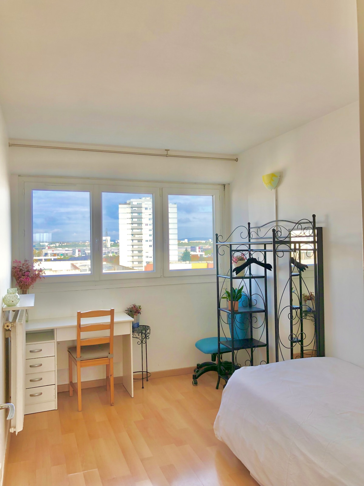 Studio avec balcon meublé refait à neuf au style moderne et lumineux, idéalement situé en plein centre ville et à deux pas de Paris, du stade de France, des transports (tramway T5 rer D metro 13 bus 168&361) et tout commerce. Coin nuit douillet, cuisine équipée, SDB moderne, wifi et TV. Ambiance LED personnalisable changez l’atmosphère en un clin d’oeil-chill romantique cosy à vous de jouer. Petite terrasse un vrai plus! Prenez votre café au soleil ou une soirée tranquille. Parking privé.