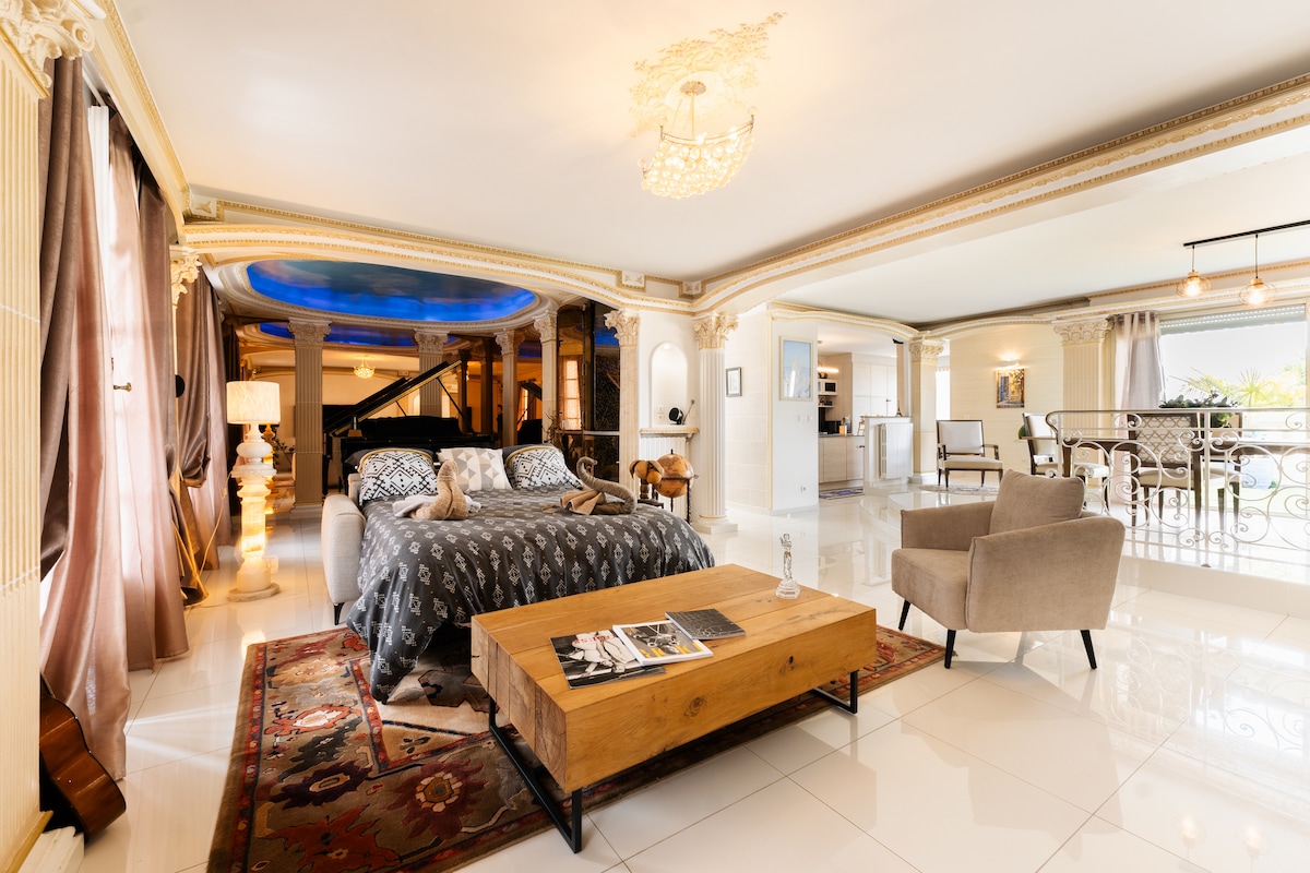 Bienvenue à la CASALOVA, un cocon luxueux au design unique, salon cinéma avec un écran géant, lit rond king size, une cuisine haut de gamme en marbre, une salle de bain digne d’un spa avec jacuzzi deux personnes et douche italienne. Ambiance chaleureuse, une déco végétale chic et prestations premium. Idéal pour un séjour romantique ou un moment de détente. Laissez-vous tenter par l’expérience Casalova pour des moments de détente inoubliables au cœur d’un cadre chaleureux et élégant.