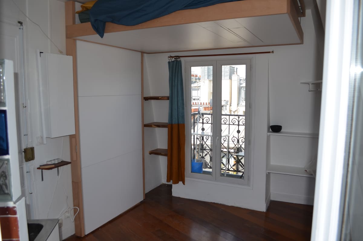 Charming studio apartment in the heart of the 11th arrondissement of Paris, in the Village Popincourt. Cathedral ceilings and newly renovated kitchen and bathroom, with a comfortable queen size bed. The studio is conveniently located in a popular neighbourhood at the junction with le Marais and the vibrant north-eastern districts of Paris.