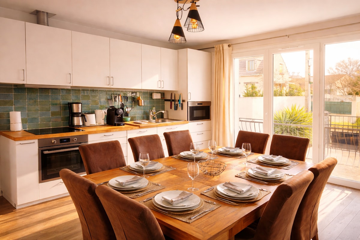 🌟 Grande villa Élégante & Spacieuse – Proche Paris & Roissy CDG - Classé 3 étoiles meublé de tourisme Séjournez dans cette somptueuse maison, idéale pour les groupes et les familles à la recherche de confort et d’espaces proche de Paris. Avec ses 5 chambres, 2 espaces cuisines et 2 espaces séjour salle à manger et salle de jeux/sport, cette maison offre une expérience unique. Un parking sécurisé privé peut accueillir 3 véhicules, Un jardin aux arbres fruitiers vous séduira à coup sûr.