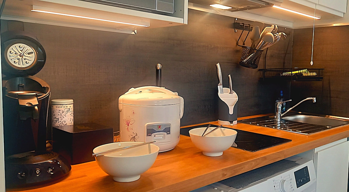 Venez passer une soirée Netflix & Chill inoubliable en amoureux ou entre amis dans un charmant T2 entièrement rénové situé au niveau -1* de notre résidence principale. Il est entièrement équipé (cafetière Nespresso, vidéo projecteur, TV, cuisine). Tout le linge de maison (draps, serviettes) est fourni. Capacité d'accueil jusqu'à 4 personnes: 1 lit double de 160x200cm + canapé lit. Le logement est non fumeur Les fêtes et nuisances sonores sont strictement interdites ! *Sous sol semi enterré