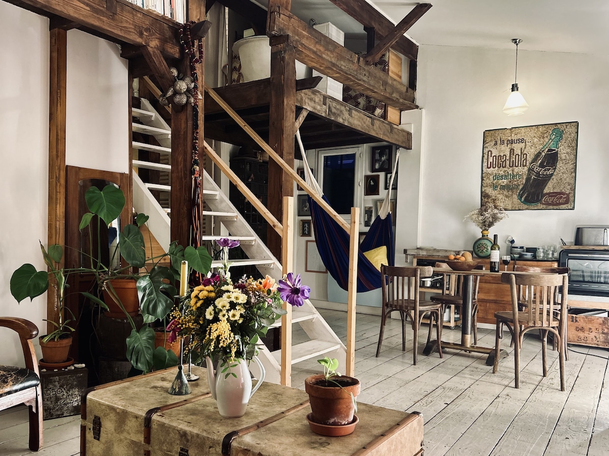 Loft with very high ceiling and a private outdoor in a courtyard garden. The private outdoor is in front of the loft. Next to the Canal Ourcq and st Martin. Ideal for singles or looking for nature and quiet in the city, Young couples on a romantic getaway. loft is fully equipped, to cook- a block away from the tube. With a bed loft, view on trees, you can hear the leaves when you wake up. No film crew or photoshoot allowed- thk you. No PRM accessibility