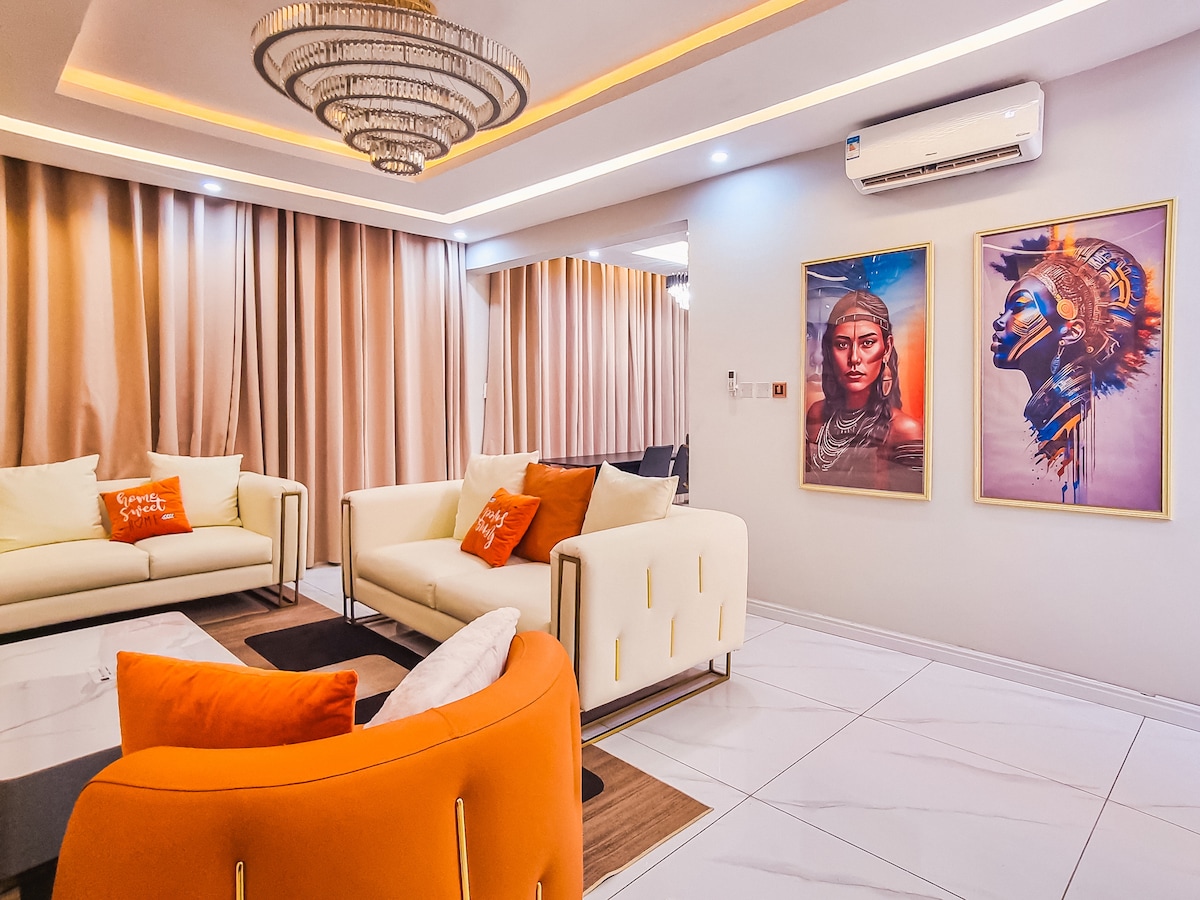 This modern, full-service, family-friendly 2-bedroom apartment with 2.5 bathrooms offers a private rooftop swimming pool and an exclusive rooftop bar and grill for families or guests. Located in the heart of Takoradi’s Anaji area, the property features a fully-equipped kitchen and dining area, complete with an island perfect for cooking, working or entertaining. The living room is outfitted with a 75" Smart TV, Netflix, Wi-Fi, executive working desk, and a soundbar for your entertainment.