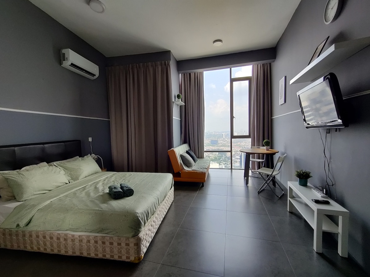 FREE NETFLIX & WIFI A getaway place to enjoy your moment, to spend your free time, to rest, to work, its a place for everything. Peaceful, very spacious , clean & comfy Studio unit. 1 Queen Bed, 2 Sofa bed, Dining area. Located at the heart of Damansara Perdana, its 1.5km away from IKEA, The Curve, IPC. 15minutes to KL, walking distance to MRT Mutiara Damansara. Plenty of restaurants, MyNews, 7Eleven, Steakhouse, Sushi, Starbucks & more!