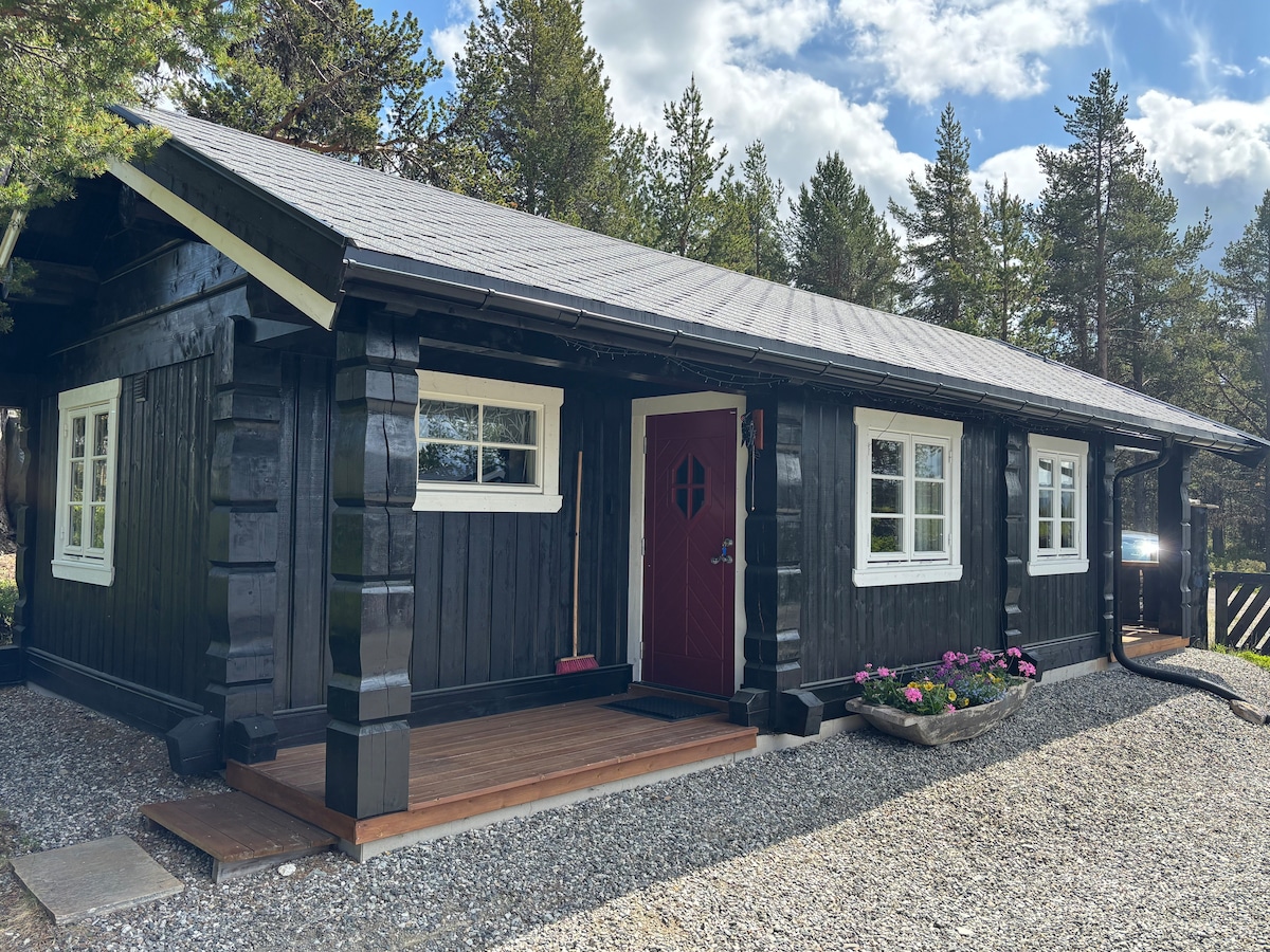 Simple and charming mountain cabin located at the tree line, 1000 meters above sea level. It is only one kilometer from the national park, and it is five kilometers to walk to the Peer Gynt cabin. The cabin has neither running water nor electricity, but it has solar power, which is generally sufficient for charging phones and using lamps. Water is fetched from the stream behind the cabin. There is an outdoor toilet in the outbuilding next to the cabin. The cabin is heated with firewood.