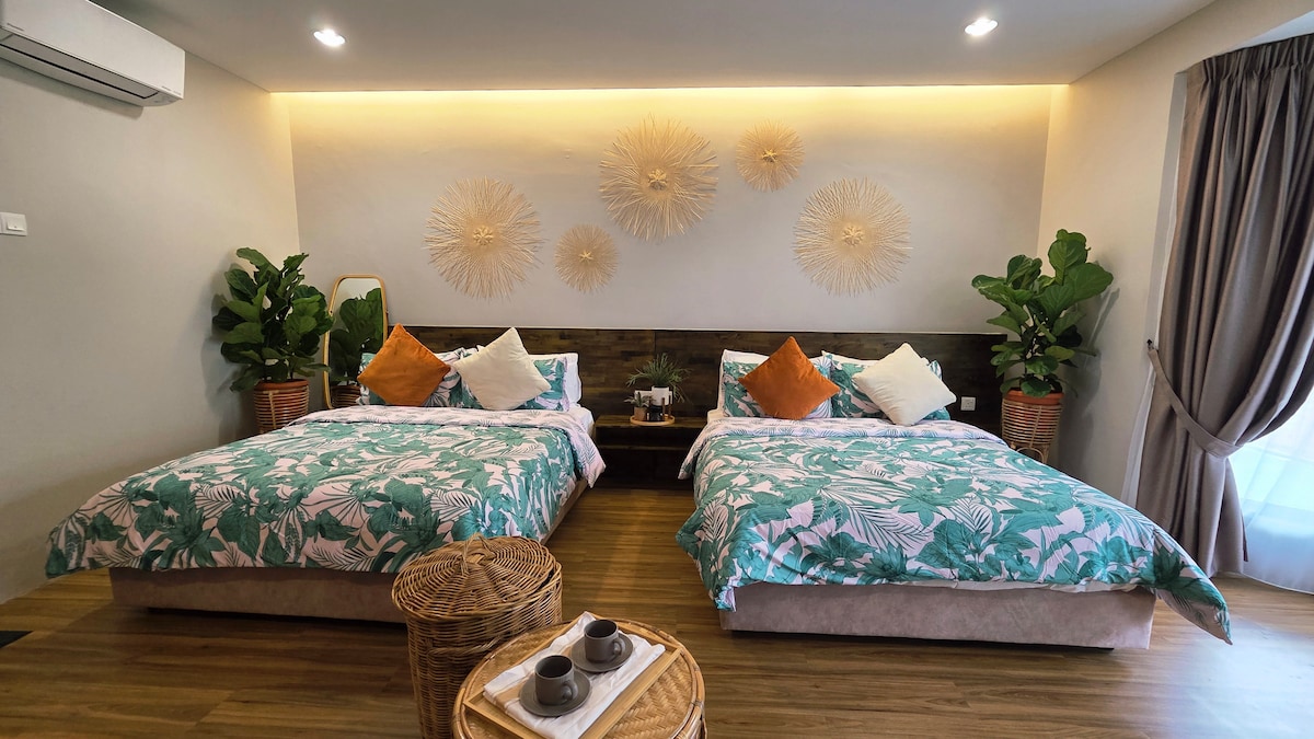 The Garden Retreat by Chrisenbel offers peaceful escapes with intimate suites, private bathrooms, and a serene shared jacuzzi. Booking is per suite, not the entire villa. Surrounded by lush gardens and relaxing sounds of water, it ensures a quiet, secluded environment. A RM200 security deposit is required, refundable on check-out if no damages or breaches of house rules occur. ensuring a calm atmosphere. An in-house caretaker is available, and local eateries are within walking distance.