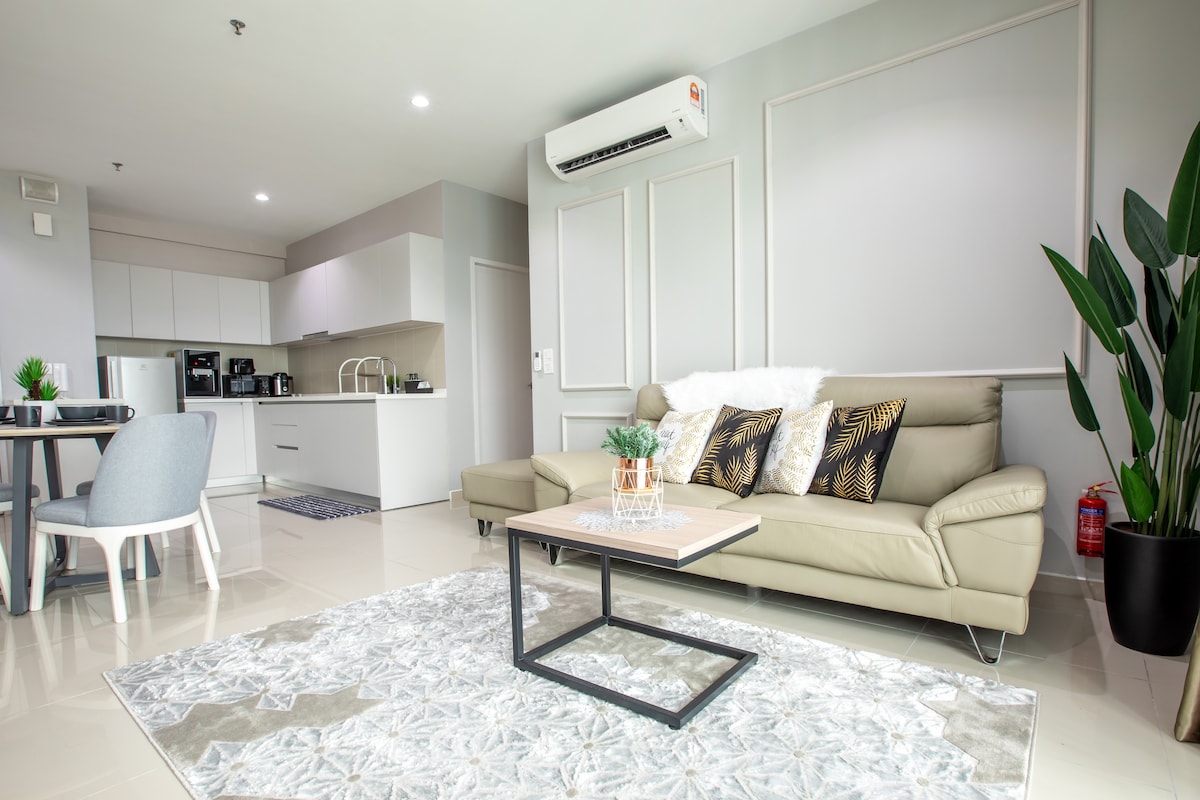 📍Pertama Residency Welcome to Grey City! This studio is newly set up with lots of love, combines contemporary decor with modern amenities and an experience all can enjoy especially Jacuzzi moment with your love & 100” projector screen w/Netflix. This unique place has a style all its own, it offers a cozy, clean, quiet & refreshing stay environment for couples. Come and experience in the Grey City! See you.