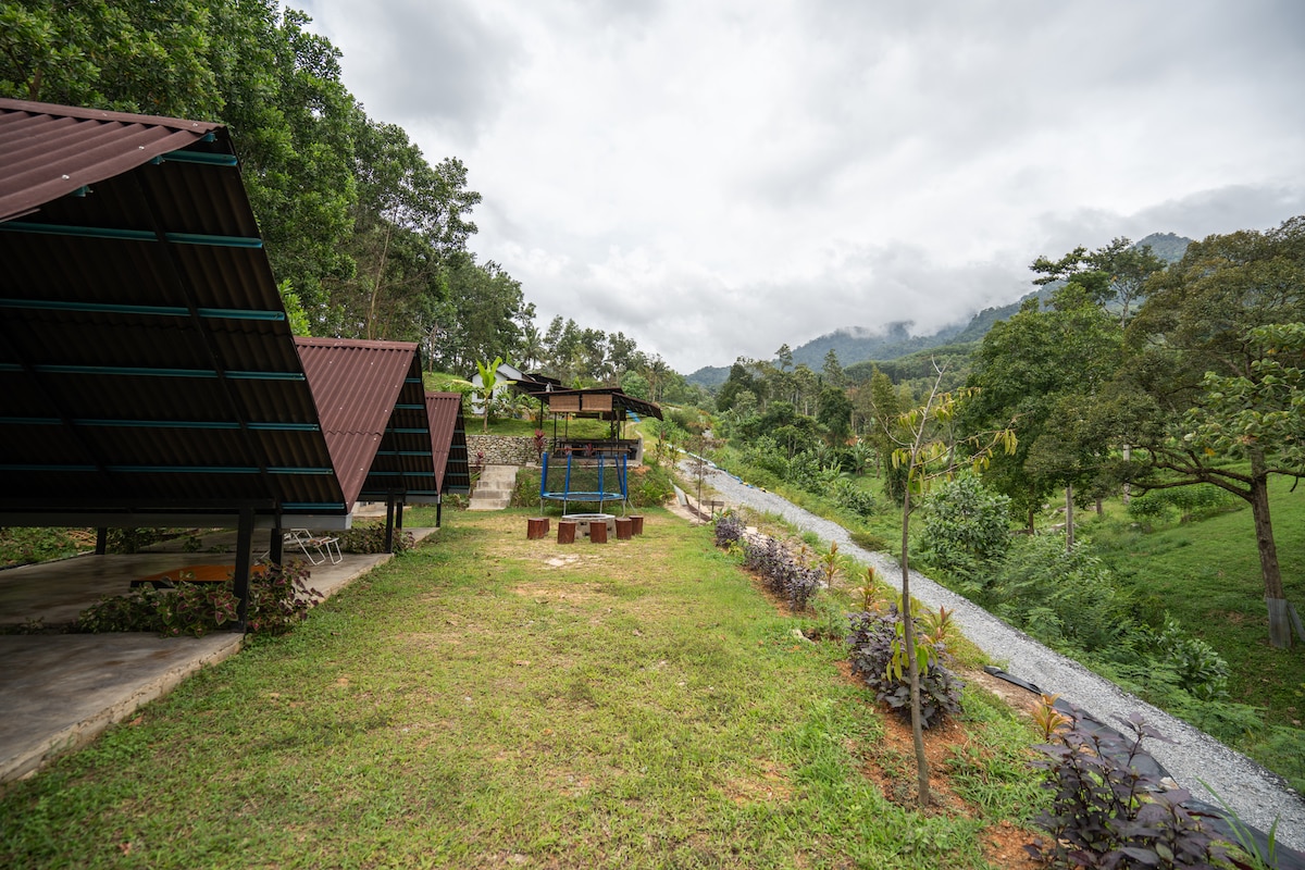 Escape to a charming riverside village surrounded by nature 🌿 1- 5 villas,If not found,msg host. Stay in a cozy tented villa perfect for families or small groups. Enjoy a clear river just steps away for relaxing, river trekking, and jungle experiences. Up to 2 extra beds are available at RM70 per bed, making it ideal for 4–6 guests. Note: Some works in progress at the site. Minor disturbances are unavoidable, but the natural beauty and peaceful riverside setting remain a delightful escape.