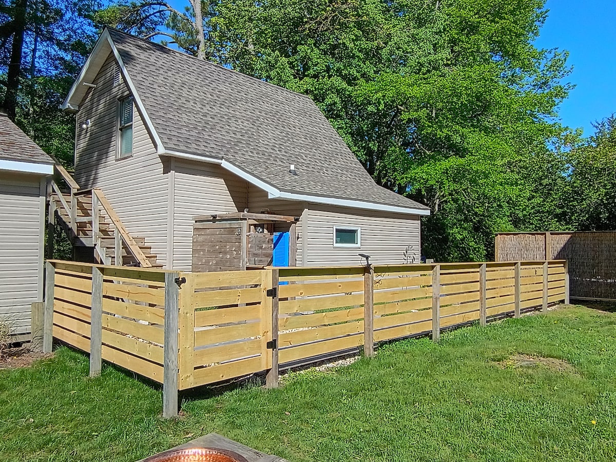 A custom 165 sq. ft. "Tiny House" located right between our theater and the garden dining area. True to the show "Tiny House Nation".. cool interior with custom woodwork, stairs to a lofted bed. Fully functioning kitchen. Spacious bathroom & shower. We provide TV and internet in the unit. We have 2 on-site restuarants, market, theater, and parking. Our AIRBNB village consists of 2 tiny houses, 2 cottages, tent sites, a loft appartment, and more! Staying at Good Earth is more than a beach trip!