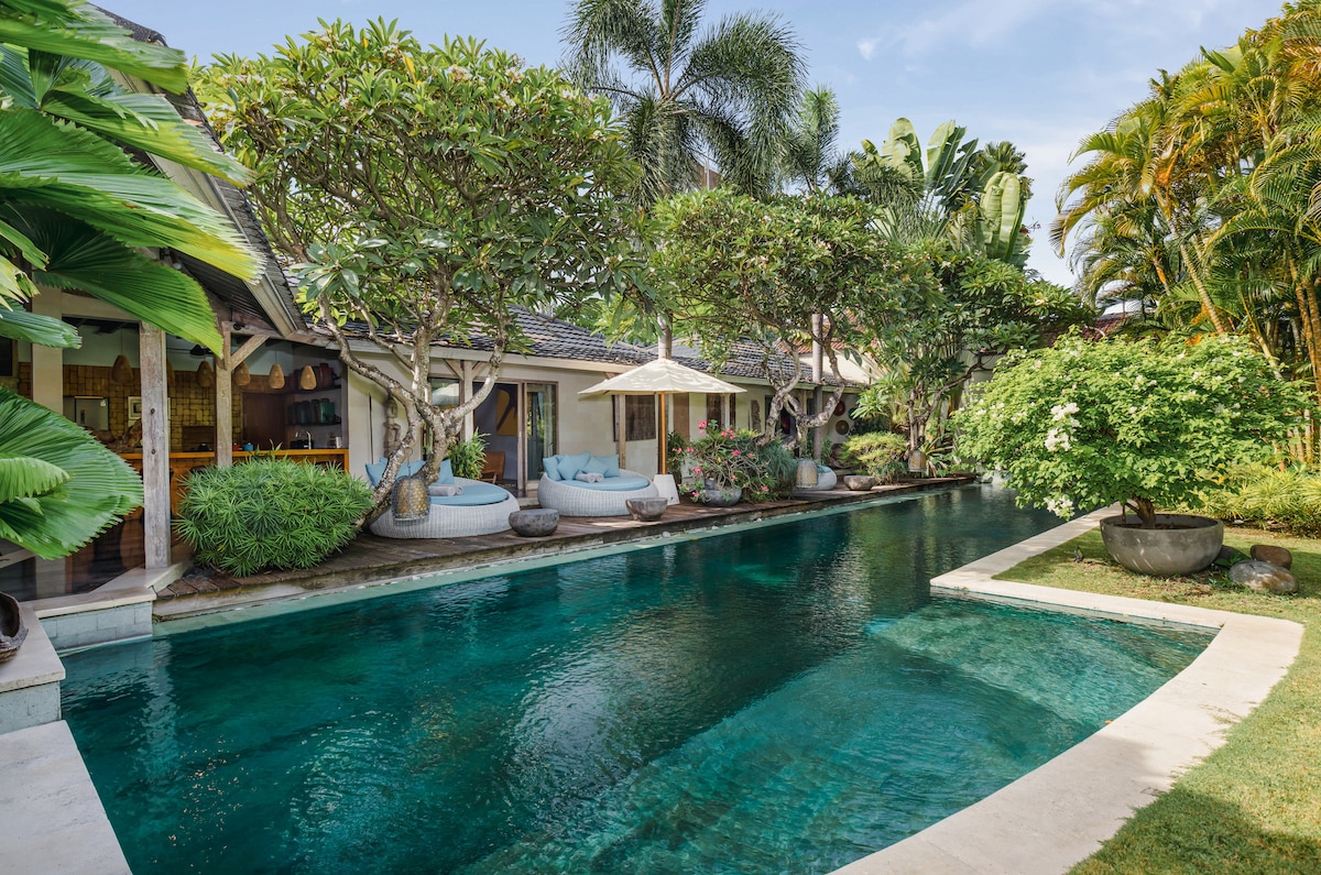Flood-free area Welcome to Villa Dwipa ☀️ A place where you can indulge yourself in the beauty and luxury of a completely private Bamboo Villa and all it’s facilities surrounded by peaceful nature 🍃 From a dive in the private pool, watching a movie on the drop down cinema screen and having a neighbor-less party in the living room to spending peaceful quality time, cozily unwinding on the balcony and everything in between, whether you're friends or lovers, we guarantee you a good time 😊