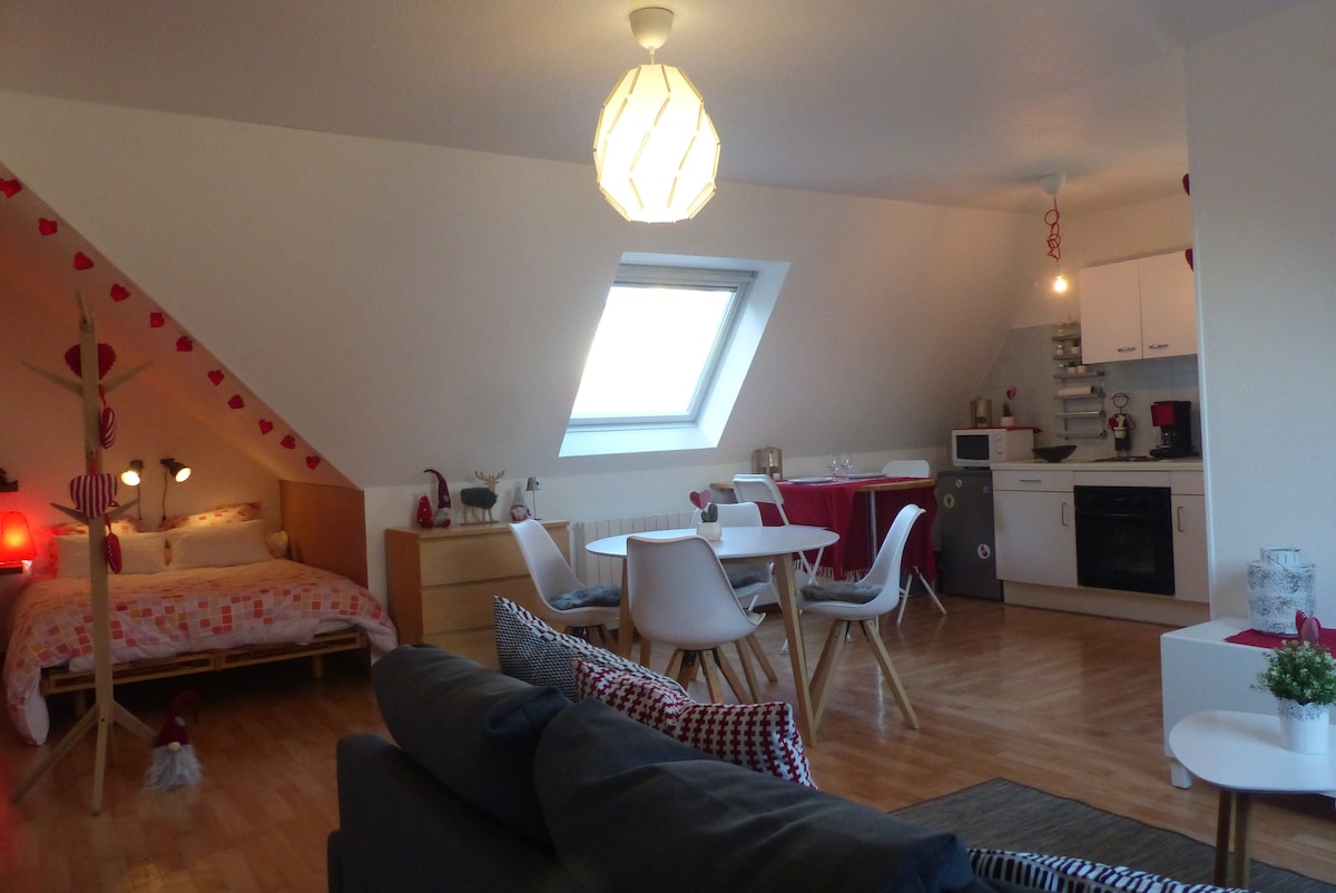 Studio lumineux de 30m2 situé au 3eme étage d un petit immeuble dans quartier residentiel calme a 5mn de la gare,5mn du centre ville Différents points d intérêts sont facilement accessibles depuis Selestat Haut koenigsbourg Volerie des aigles Montagne des singes Spa et Casino a Ribeauville Route des vins et ses caves Marches de Noel (TGV STRASBOURG toutes les 17mn)40kms 25kms de Colmar 45kms Europa Park Obernai,Riquewihr,les grandes plaines du Ried,les montagnes des Vosges pour vous séduire