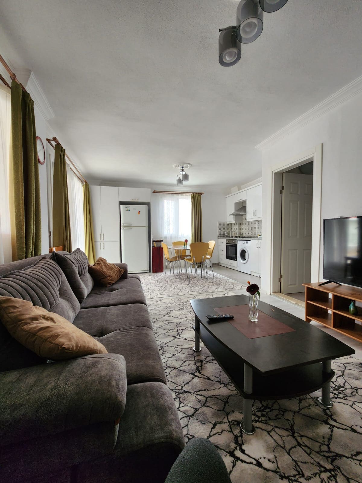 4 Houses, located just above the marina, one bedroom and one saloon with balcony. It consists of a seafront, scenic, central and well-furnished house. This house is located on the first floor of our building. There is a 160X200 double bed in the bedroom and a sofa bed in the living room. It is a spacious furnished house with an American kitchen, a large balcony and a sea view.