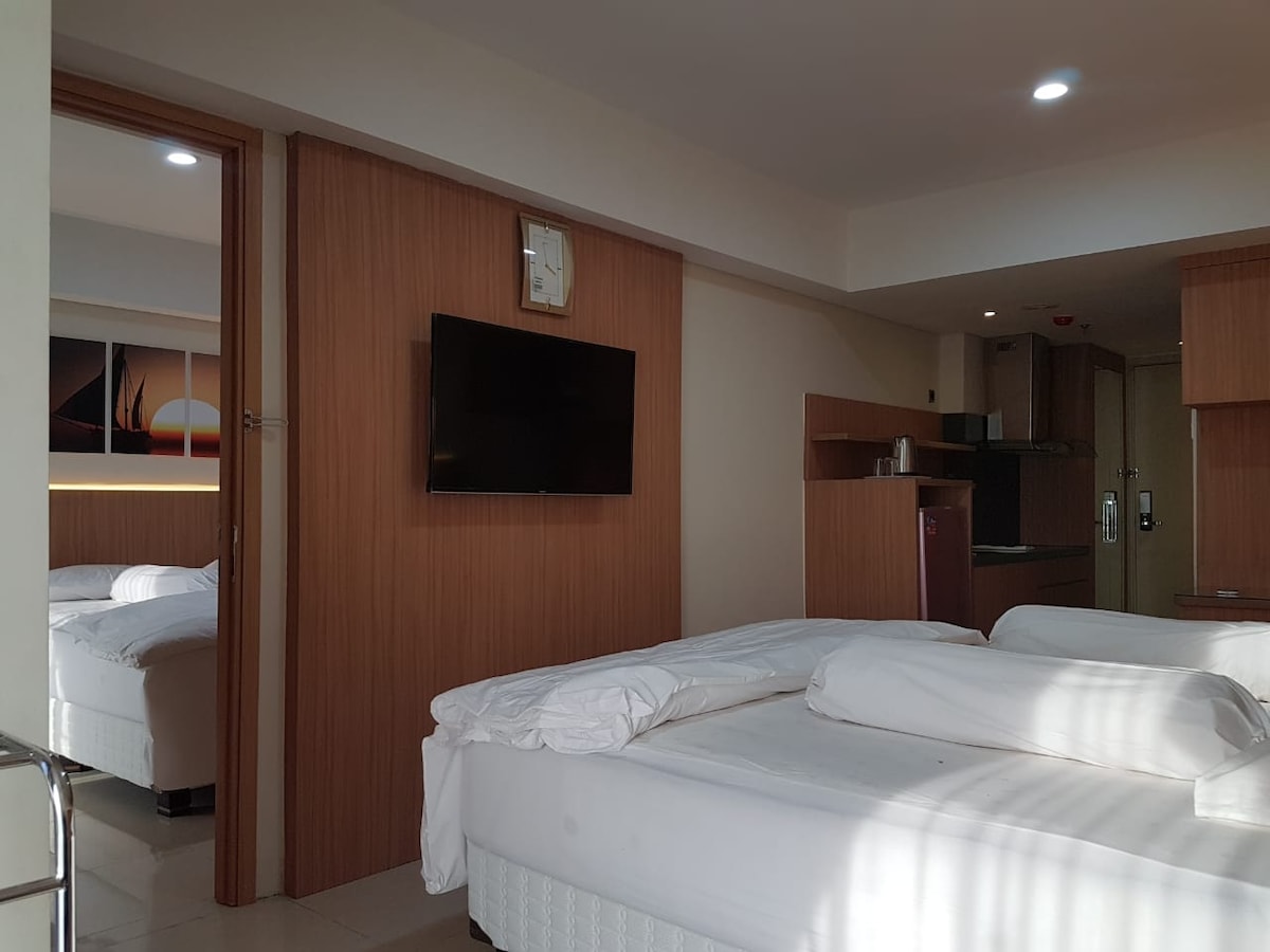 Glamouros Room completely with Modern Living Furniture combined with Artistic Ambience will totally impressed you.Two Bedrooms,Spacious Living Room,Ful Set Kitchenette,and many more facities as The One and Only Jaya Suite.