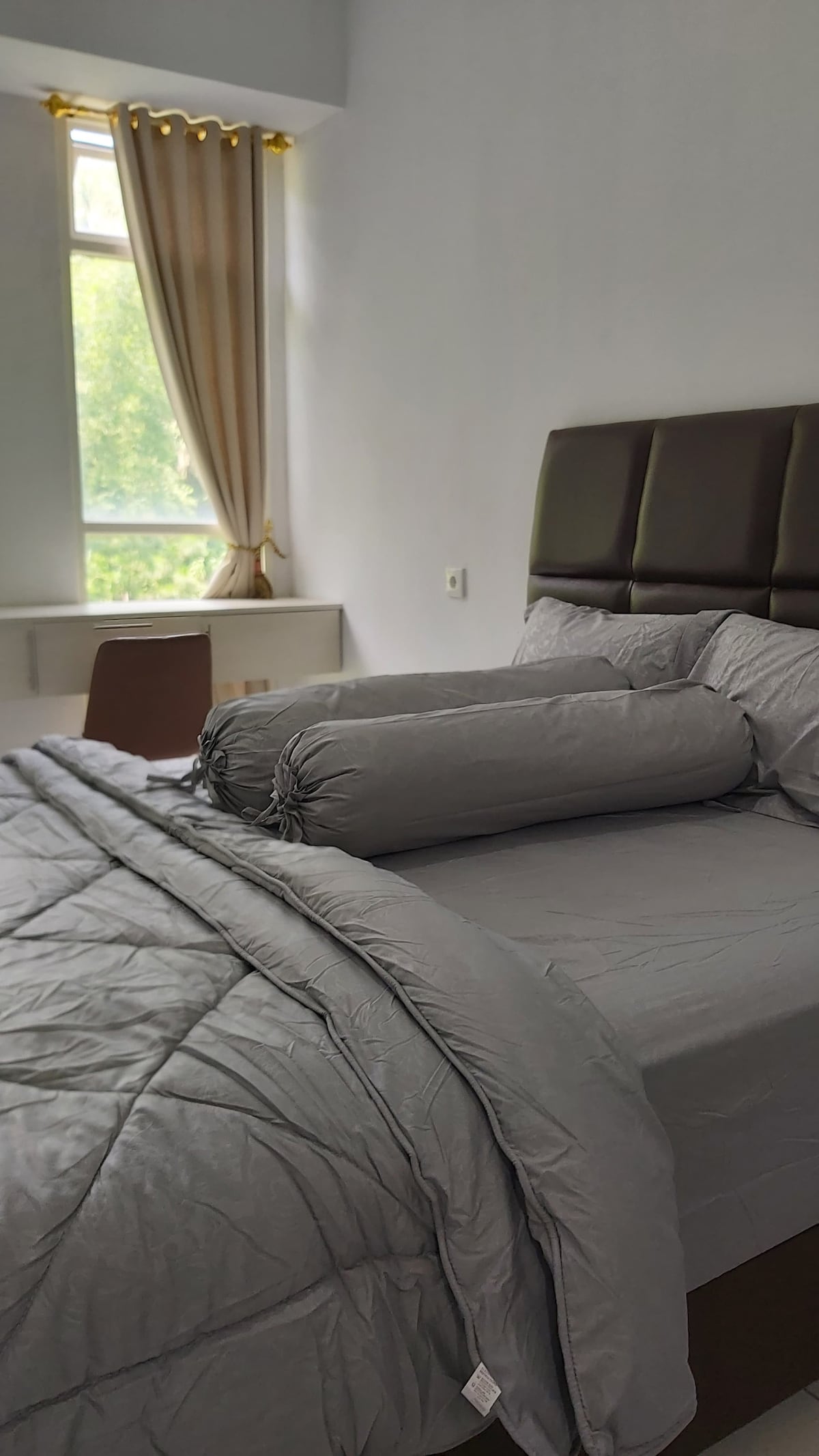 Located in Ngaliyan, West Semarang, easy to locate, supermarket and restaurants are just a few minutes away. Relax yourself at our lovely 2 bedroom apartment, with 48m sqr area. Fully equipped kitchen with refrigerator. 5 minutes drive from BSB industrial park The Unit We provides water heater and a bedroom with Queen size bed (160x200m), child bed, and Single size bed (100x200m), the units all are fully furnished. In total, the unit could accomodate 4+1 adults