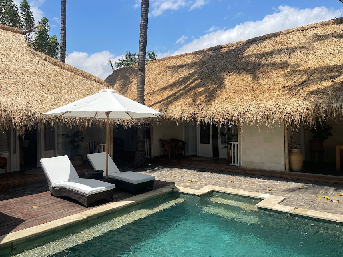 Villa-Gili-Bali-Beach is Gili's most outstanding beach front pool villa! Our luxury beach villa ( sleep 14 to 18) of 500sqm consist of 2 Beach Bungalows, 2 Seaview Suites , 3 Sunset Suite and a 200 sqm overflow pool. You will appreciate your room for : - the beautiful sea view and pool view - the quiet area - the sunset (west coast) - the staff (8 people) friendly and discret