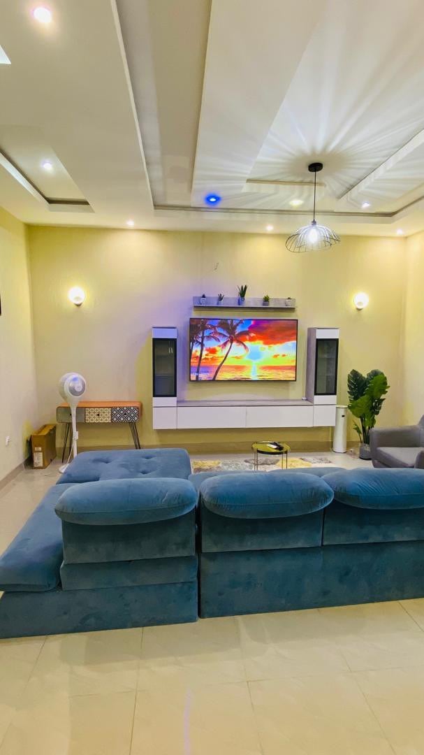 Logement de haut standing situé dans un quartier très calme, affiche un style résolument unique de part le confort qu'il offre. Situe au 1 er et dernier étage, il dispose d'un grand séjour très spacieux avec un beau balcon aménagé, de deux grandes chambres, chacune avec leur salle de bain et toilette séparé, une cuisine full équipé, une salle de détente pour prendre un bon bain devant la télé. Il est situé à : 25 min de l'aéroport 5min de la plage. Appartement entièrement climatisé.
