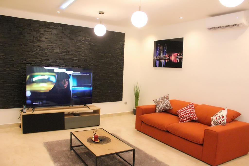 Ambiance cosy tendance urban chic à l'africaine, mer à proximité, quartier résidentiel paisible et sécurisé, le logement dispose de plusieurs espaces spacieux, aérés et lumineux et des commodités de grand standing. Idéal pour un séjour professionnel ou de loisirs. Wifi, abonnement TV câble, personnel de sécurité, consommation eau inclus. Électricité payante (achat de recharges prépayées). Options à la carte: accueil/navette aéroport, concierge, tourisme, traiteur, location de véhicule.