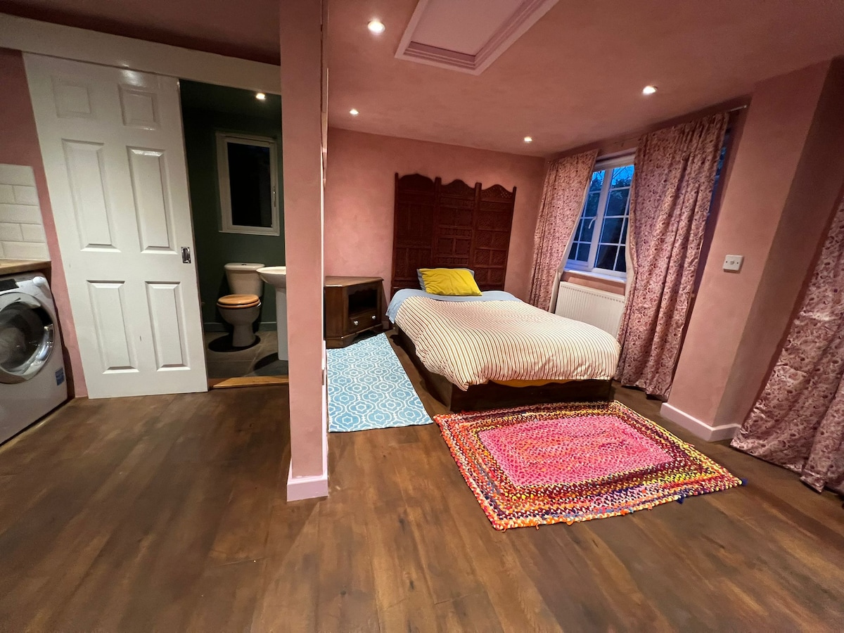 Arrive through double doors into this delightful, character-filled studio, perfect for a relaxing getaway. Small & cosy, it offers everything you need for a comfortable stay. The space is designed to make the most of every corner, with a warm, inviting atmosphere. The studio is nestled in the heart of the village, with everything you need just a short stroll away. Two welcoming pubs, a wine bar/café, and three shops. Scenic walks or simply to unwind, the studio offers the ideal base.