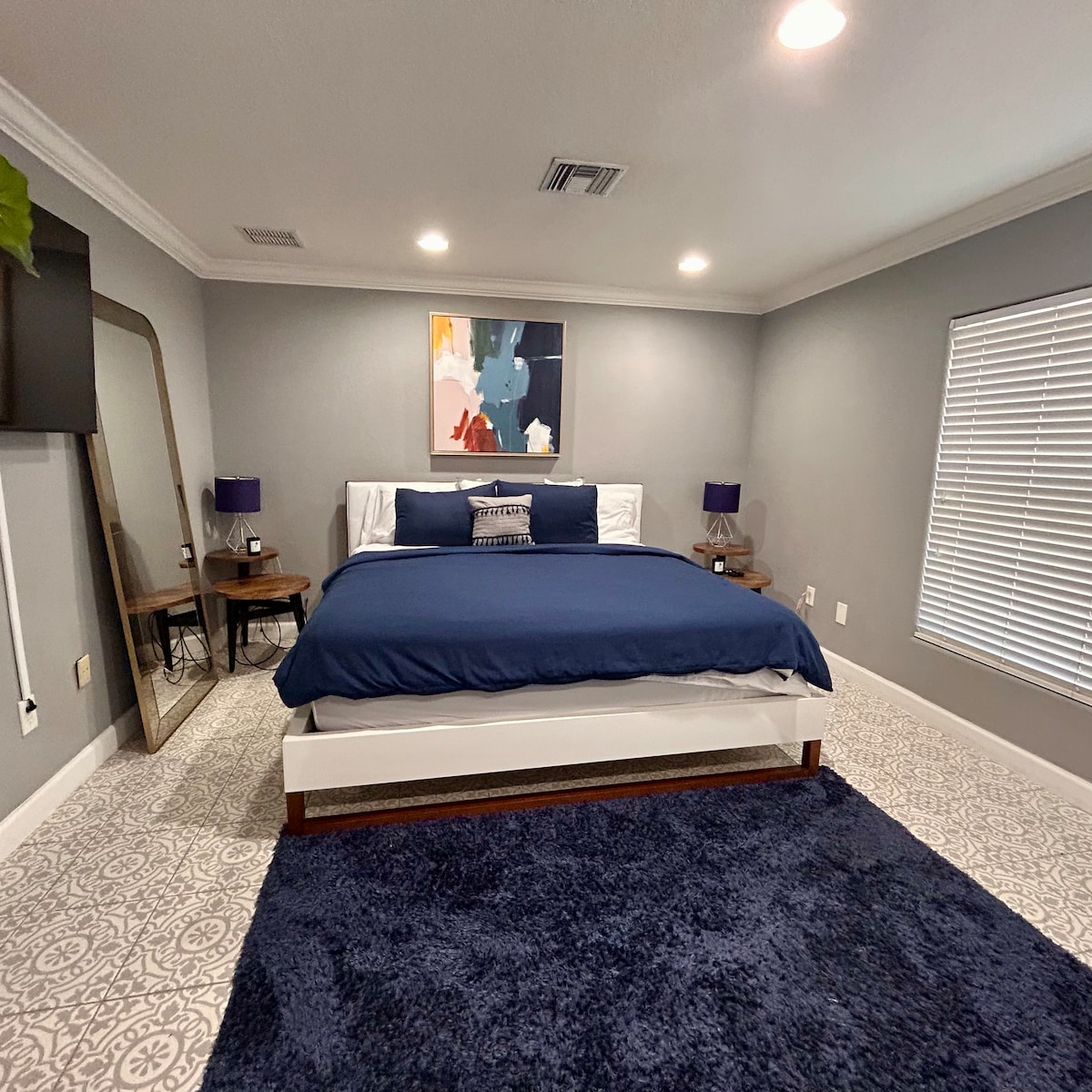 Kick back and relax in this calm, stylish space. Enjoy the splendors of Sanford’s historic district with its beautiful brick roads and magnificent oak lined streets dripping with southern Spanish Moss. Walk or ride to the downtown area where you can eat and drink till your hearts content. Enjoy a walk along the lake or stroll through the streets to look at glorious restored southern homes. The Bed & Brad offers you all the comforts of home where you can enjoy your stay at your own pace.