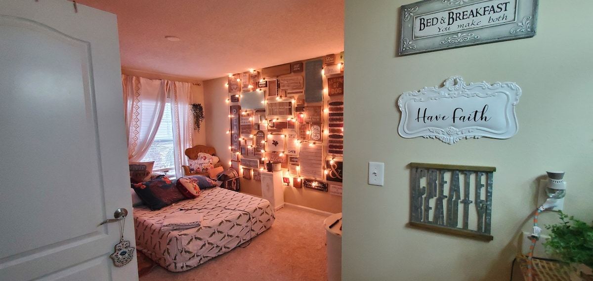 Bonheur A la Maison is the home that offers a beautiful, comfortable, spacious, convenient and all around happy feeling with the little extras and attention to detail to make you feel like you're basking in a lot of luxury for a simple price! Its everything you need from your blow dryer, to your plush robe and from your USB outlets at all bedsides to your built in wireless speakers for your music of choice. We tried to think of it all. Conveniently located near lots of shops and parks!