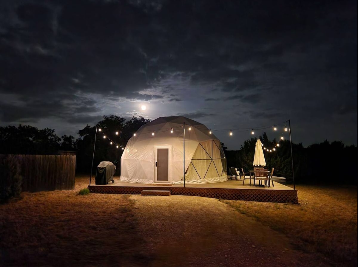Here at our Cloud Dome you'll be away from the hustle and bustle in a stunning hill-county Geodome! Take advantage of our outdoor spaces where you can enjoy a drink in the hammock bed, soak in the hot tub or indulge in your very own outdoor shower. Nestled in the trees on the edge of a small bluff your space has been carefully crafted to take full advantage of the surrounding nature all the while being in comfort and style! This luxury glamping experience is the perfect escape.