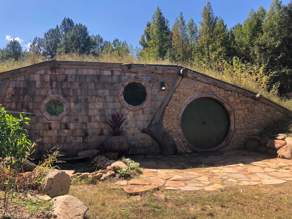 " In a hole in the ground there lived a hobbit....it was a hobbit-hole, and that means comfort!" -- JRR Tolkien Hobbit house is the perfect destination for LOTR, D&D, and fantasy fans! Whether you choose to sleep in the soothing Rivendell bedroom or enjoy your night adventure inside the Lonely Mountain bedroom, either way you will find yourself lost in MIddle Earth! Need more space? Click on my profile to see all of our available cabins!