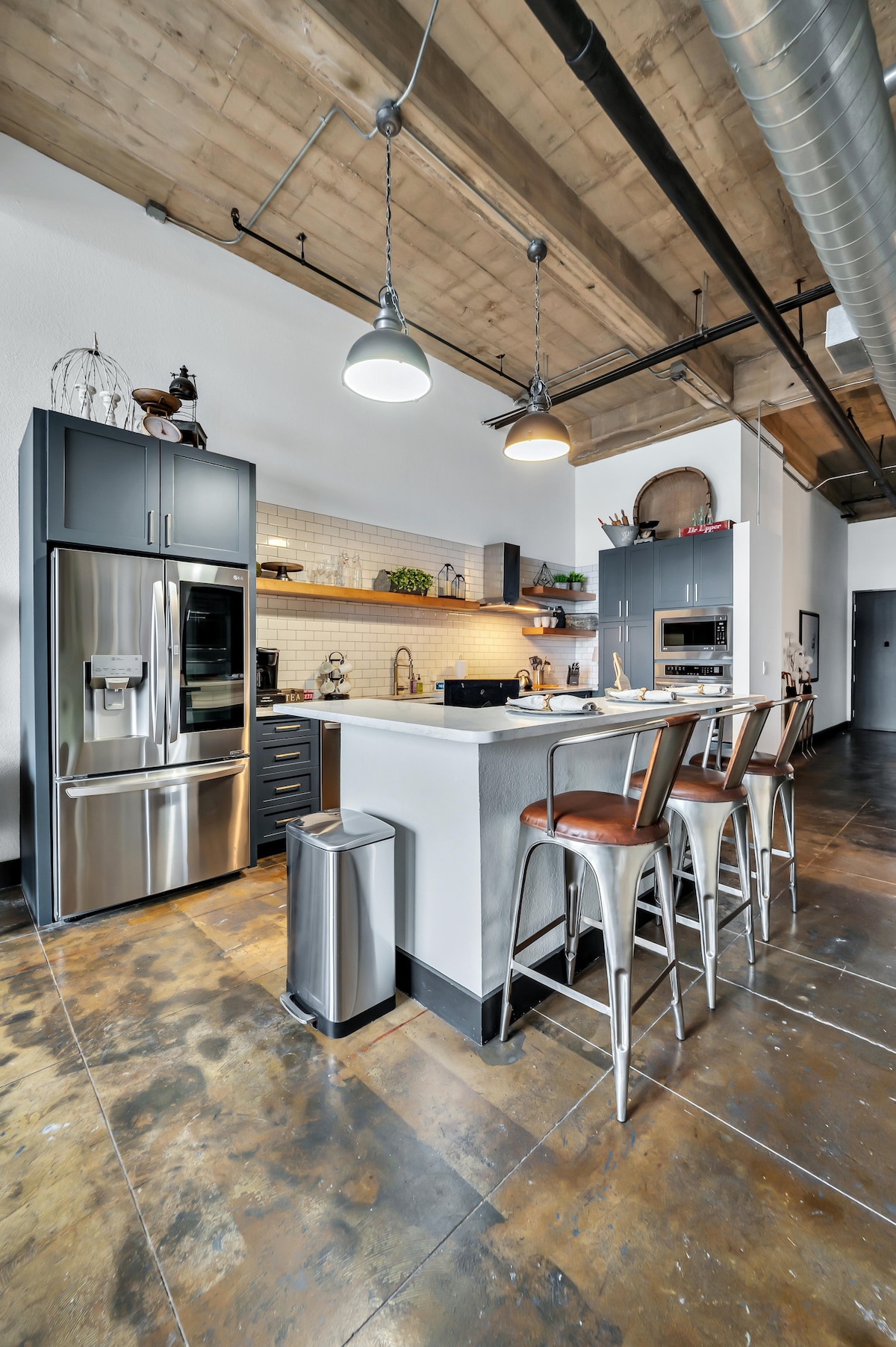 On the corner of 4th and Mary, in the corner of the historic Behrens Warehouse, "The Corner" loft is a vintage appointed 3 bedroom/ 2 bath industrial loft in the heart of the Silo District of downtown Waco. Leisurely walk to Magnolia Market or Spice Village, across the street from the Dr Pepper Museum, upstairs from the popular Fabled Bookshop and Cafe. Less than a mile from Baylor University and two blocks from the McLane Stadium shuttle pick up. Free on-site street parking at the building.