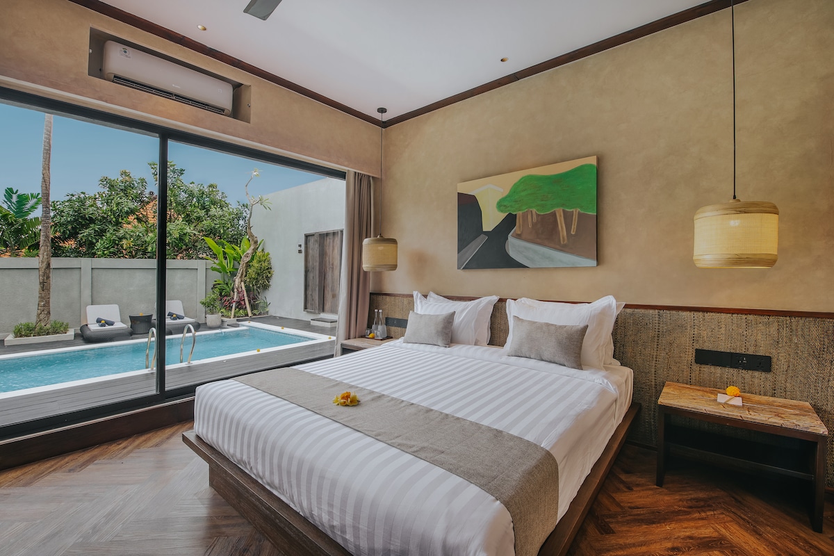 Kick back & relax in this calm, stylish space.Escape to LOKU’s brand-new 1BR Garden Villa, just steps from Kedungu Beach. Surrounded by lush greenery and rice fields, this tranquil hideaway blends modern design with tropical charm. Unwind in your private patio, and fall asleep to the sounds of nature. Perfect for couples or solo travelers seeking rest, surf, and sun — with on-site shared pool, sauna, ice bath, and healthy café. Peaceful, stylish, close to it all — but far from the crowds