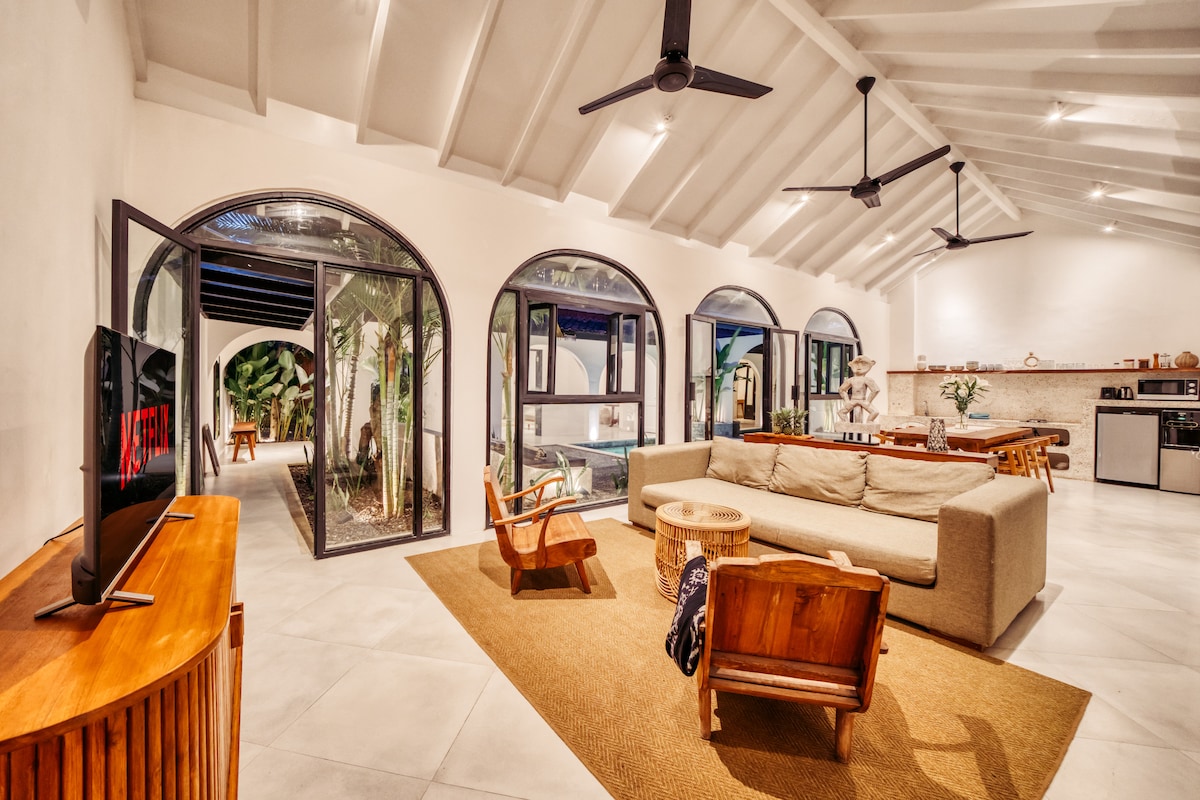 人员配备齐全的豪华别墅,步行即可抵达海滩!
