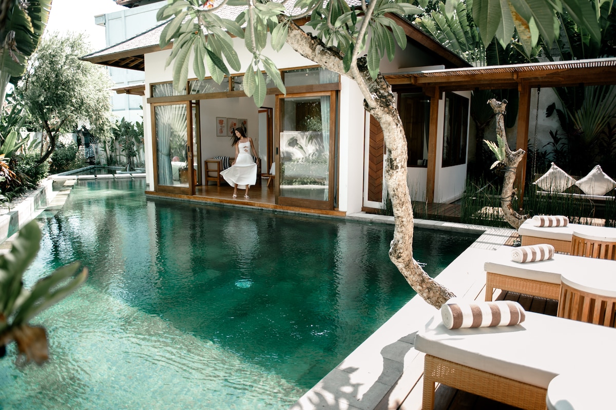 The two bedroom deluxe villa situates in simply the best area of Seminyak, but perfectly hidden in a serene and quiet villa neighbourhood, featuring: 1. private posh pool bar with a swinging love seat 2. sunken seating area in a tropical setting 3. lavish garden by pool 4. a terrace at second floor - enough space chill and soak up the Bali sunshine! Enjoy your romantic private times close to a fine selection of world-class cafes, restaurants and beach clubs.