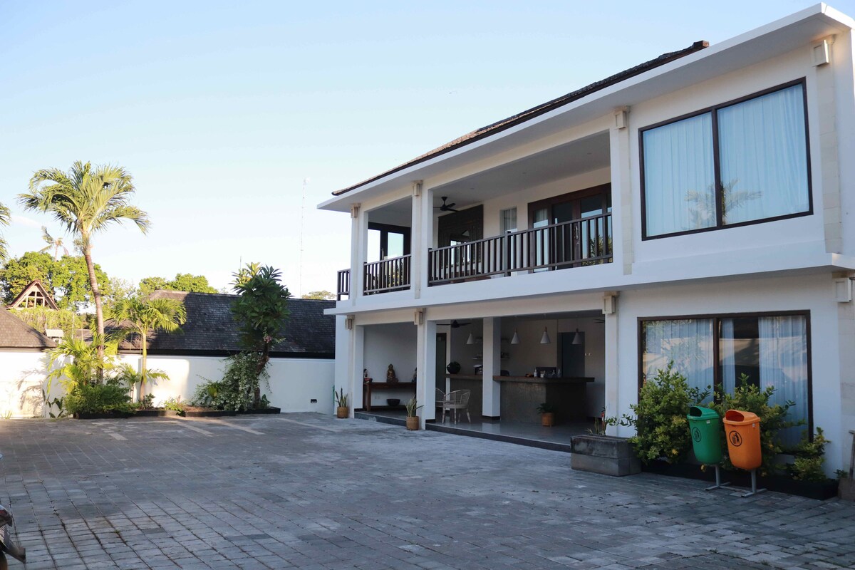 Comfortable rooms with peaceful ambiance that allows you to make the most out of each stay. The guest house has an outdoor swimming pool with sharing kitchen, parking area and wifi high speed internet connection throughout the guest house. Located about 5 minutes from the beach (Berawa, Batu Bolong, Echo) and just 5 minutes from Seminyak. Close to famous Finn Beach Club, Desa Seni for Yoga, Deus ex Machine Bar, and many other signature venues. Stay with us for an authentic experience.
