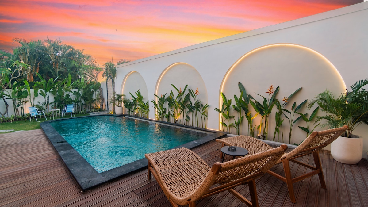 Our two-story residence captures the essence of serenity, featuring expansive living areas, spacious master suite with en-suite bathtub, bathroom and walk-in closet, fully equipped kitchen island, and private pool surrounded by a lush tropical oasis. We offer more than a stay; we create experiences. Enjoy a relaxing in-villa massage, or movie nights with a projector and popcorn. Each moment is curated to rejuvenate and inspire, creating a stay uniquely yours.