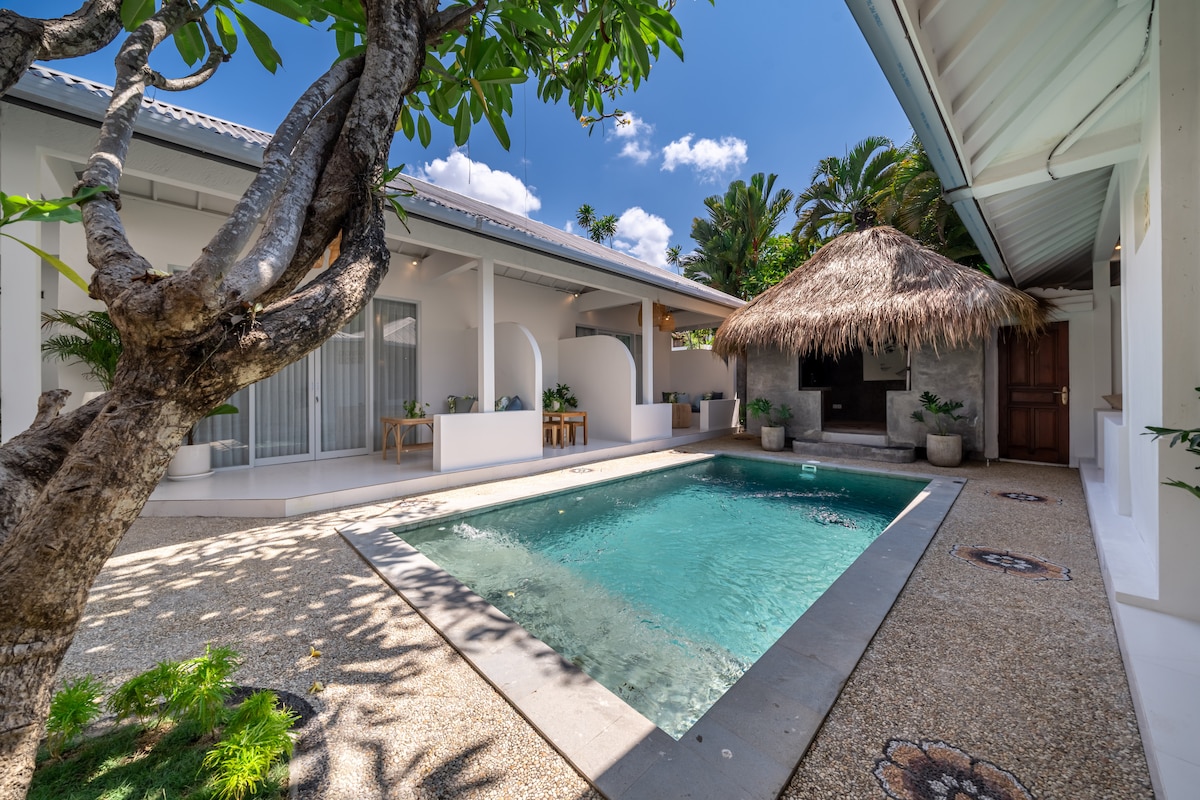 ✔ Fully Staffed ✔ Fantastic Central Location ✔ 25Mbps+ WiFi ✔ 16m Pool & Poolside Bar ✔ Private Terrace and Ensuite 'The Snug' is the epitome of romance. A beautiful one bedroom hideaway with artistry in every nook. Ensuite bathroom, poolside porch, and private sun-terrace tucked away behind. This villa is one of 7 unique and private abodes sharing a pool, poolside bar and stunning tropical gardens at Sejoli Villas, our family run boutique retreat in Umalas, Bali. Absolute holiday perfection