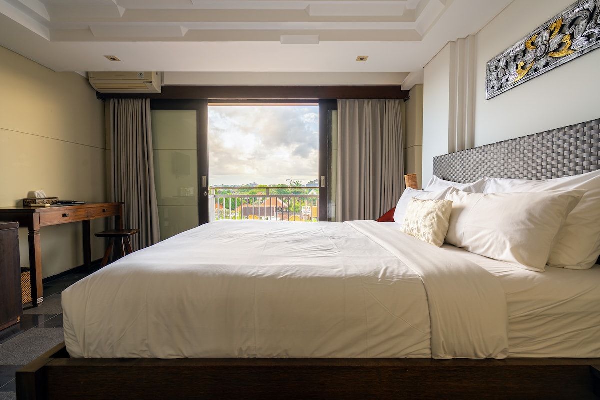 Relax in our cozy Twin Room at Anam Tang, located in vibrant Seminyak. Featuring two comfortable single beds, air conditioning, a private bathroom, a smart flat-screen TV, and a terrace with pool view. Enjoy access to the outdoor pool, garden, on-site restaurant, front desk helpers, and 24-hour security. Just 3.7 km from Petitenget Temple and close to shops, cafés, and beaches. Perfect for friends or travel buddies exploring Bali.