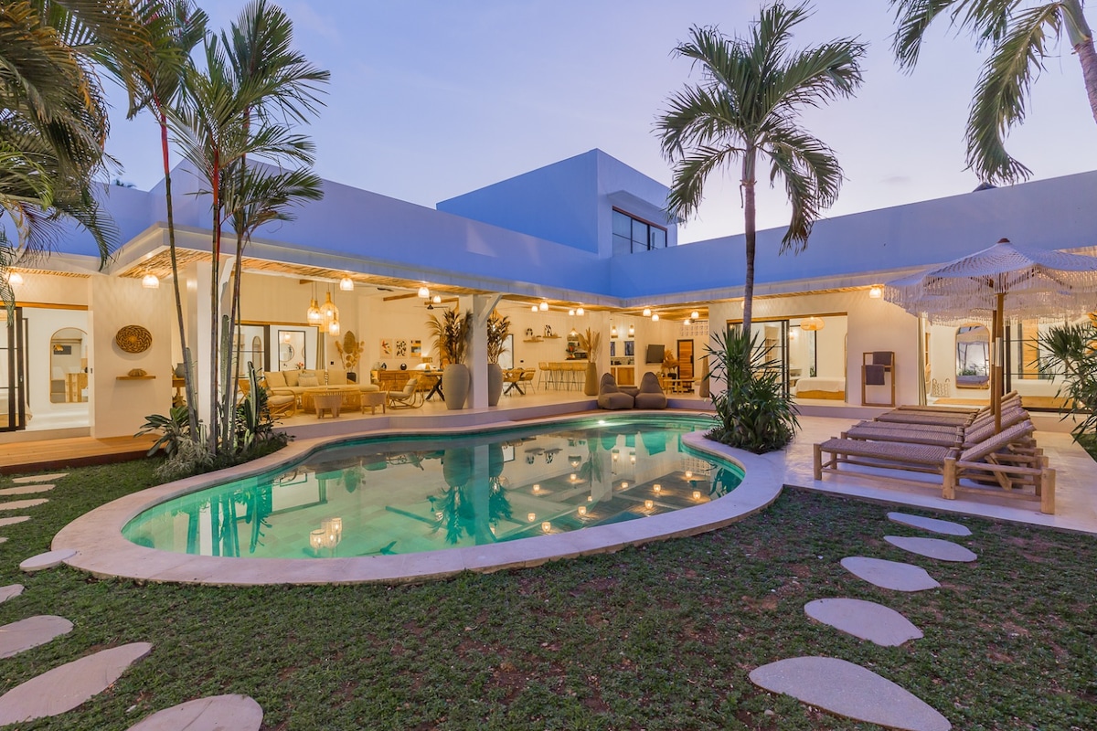 Spacious 5-bedroom villa in Umalas, perfect for families and groups. Enjoy a 30m lap pool, outdoor bar, BBQ, and lush tropical garden. Open living spaces and elegant design create a true Bali escape, just minutes from Seminyak and Canggu beaches, cafes, and dining. Includes full-time staff, daily cleaning, and super-fast 500Mbit fibre optic Wi-Fi for a seamless, worry-free stay.